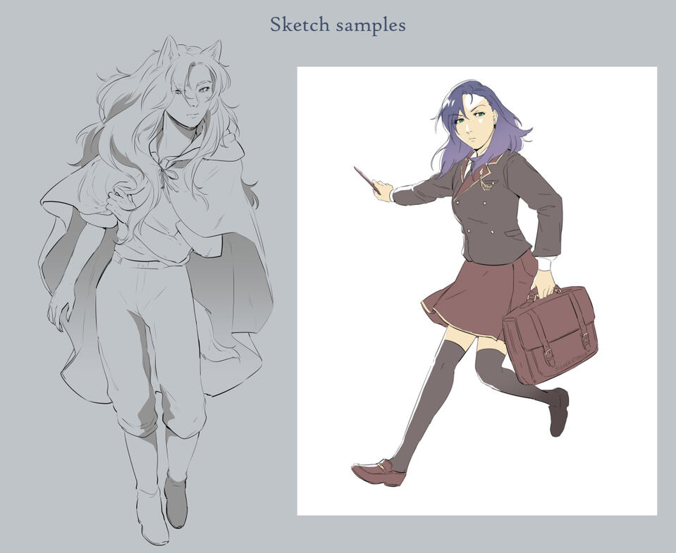 Full payment upfront (see ‘process’). The exception to this term is if the commission total (excluding Paypal fees) exceeds $200. In this case, the client has the option of paying 50% of the total upfront, and the remaining 50% to be paid upon completion of the commission.All transactions are final unless I cancel the commission mid-progress under any circumstance (e.g. unable to complete commission due to injury, etc.). In which case, the client will receive a full refund. If the client cancels a commission before the drawing process begins on the commission, the client will receive a full refund.As soon as payment is received, it’ll take within 1-3 weeks to complete depending on my schedule. The client will receive a progress update on the commission if it is not completed within 3 weeks. No guaranteed deadline. For a set turnaround time, see rush fee.Rush fee: finish in 5 days +50% of cost, finish in 3 days or less +100% of costPaypal only.Paypal payments are set in US currency (USD).Process1. Reserve a slot on the commission list through the commission form. Slots are first come, first serve.